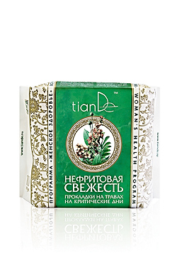 Прокладки «Нефритовая свежесть» на травах на критические дни включают фитокомпозицию FCM из 19 целебных растений (масло черного перца, экстракты гирчовника влагалищного, ромашки, пустырника, софоры желтоватой, бархата амурского и прочие). Предназначены для дневного использования в период менструаций. Максимальный лечебно-профилактический эффект достигается в комплексном применении с фиточаями «С красной щеткой» или «С боровой маткой» и при последовательном использовании прокладок «Нефритовая свежесть»: на критические дни – ночные – ежедневные.
