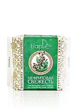 Прокладки «Нефритовая свежесть» на травах на критические дни включают фитокомпозицию FCM из 19 целебных растений (масло черного перца, экстракты гирчовника влагалищного, ромашки, пустырника, софоры желтоватой, бархата амурского и прочие). Предназначены для использования во время сна в период менструаций. Имеют удлиненную форму, клеевая поверхность надежно фиксируется, отлично защищают от протекания во время сна. Максимальный лечебно-профилактический эффект достигается в комплексном применении с фиточаями «С красной щеткой» или «С боровой маткой» и при последовательном использовании прокладок «Нефритовая свежесть»: на критические дни – ночные – ежедневные.